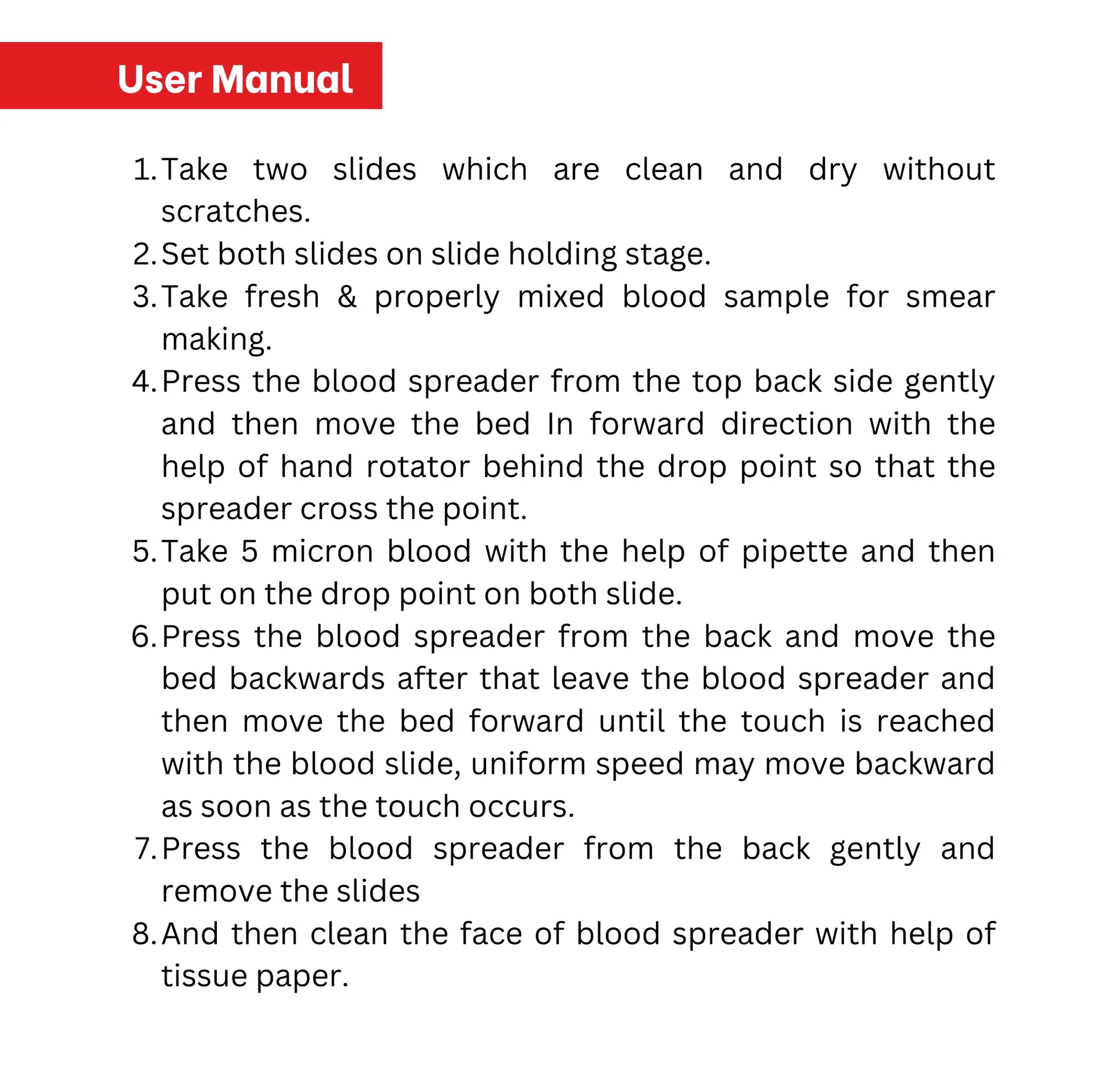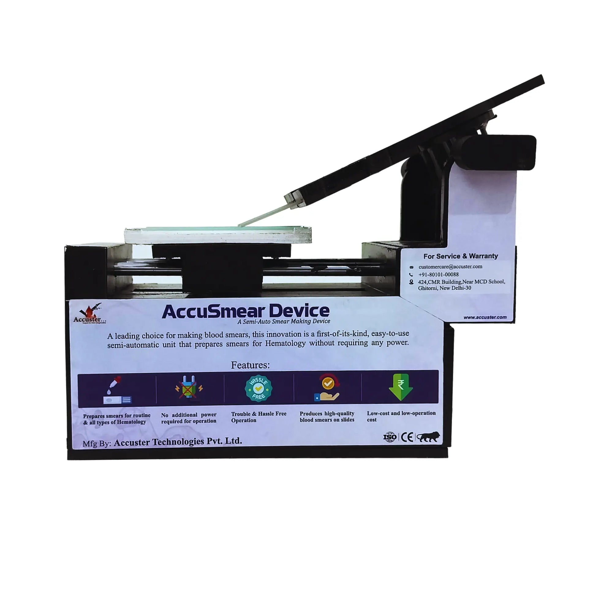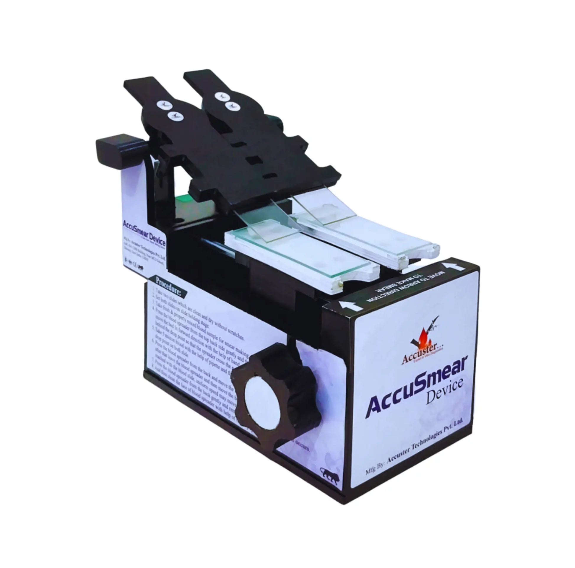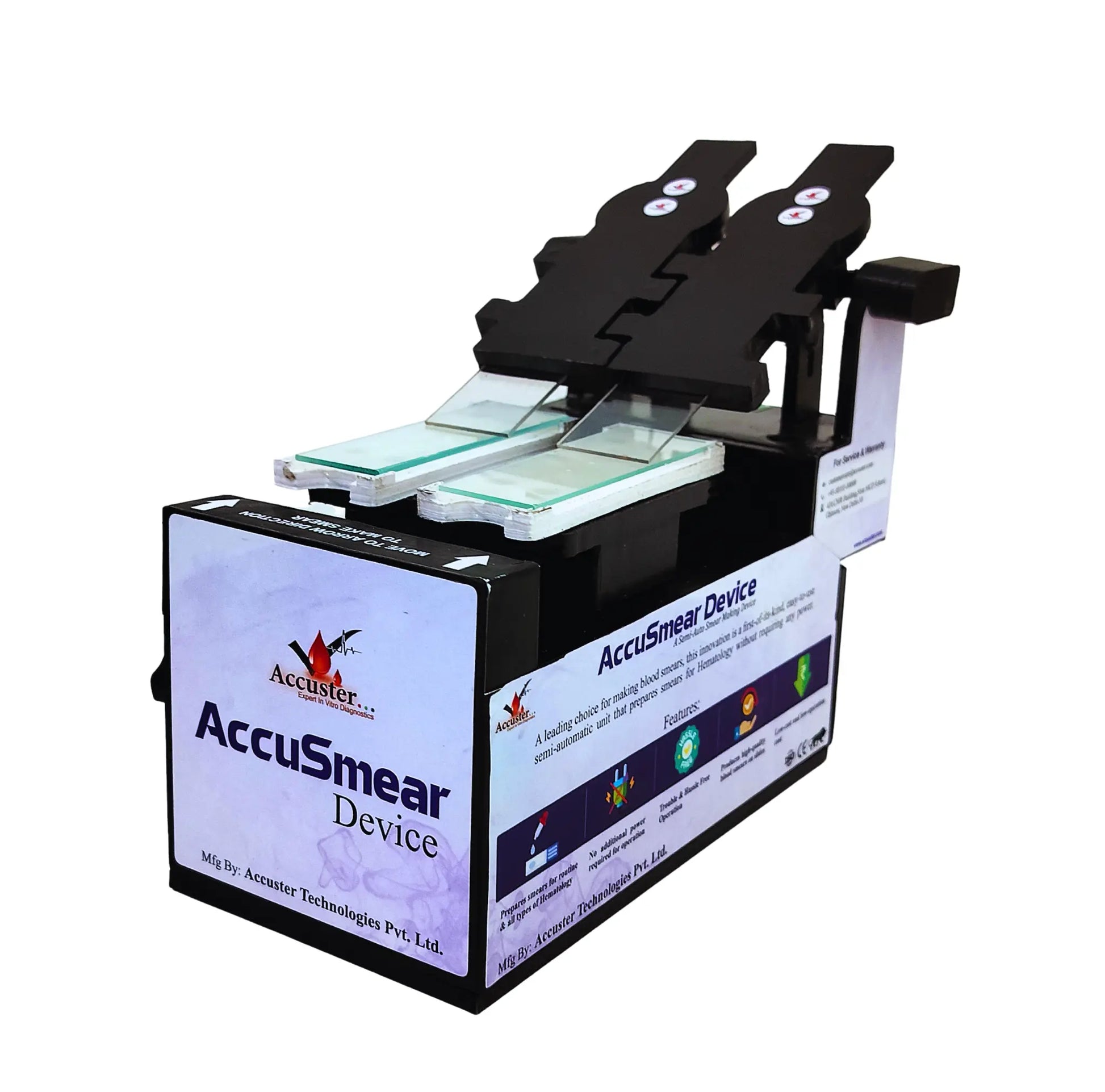 AccuSmear is a Semi-Automatic Device used for making Blood Film or Peripheral Smear for Examination of the Blood Cells Microscopically.